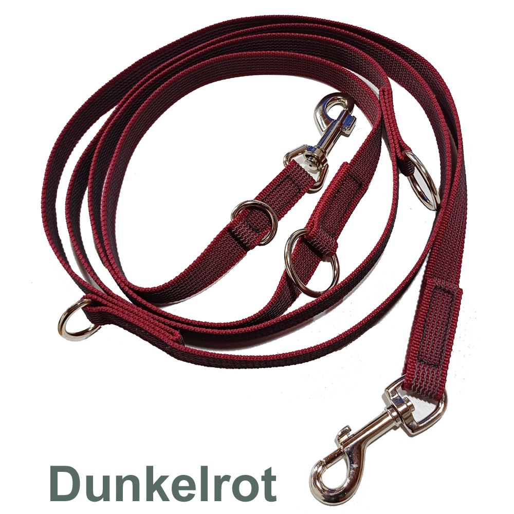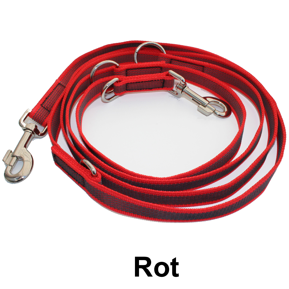 Durch eine Gesamtlänge von 2,90m und den vier Verstellmöglichkeiten kann diese gummierte Hundeleine immer auf die passende Länge eingestellt werden.